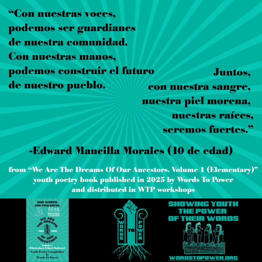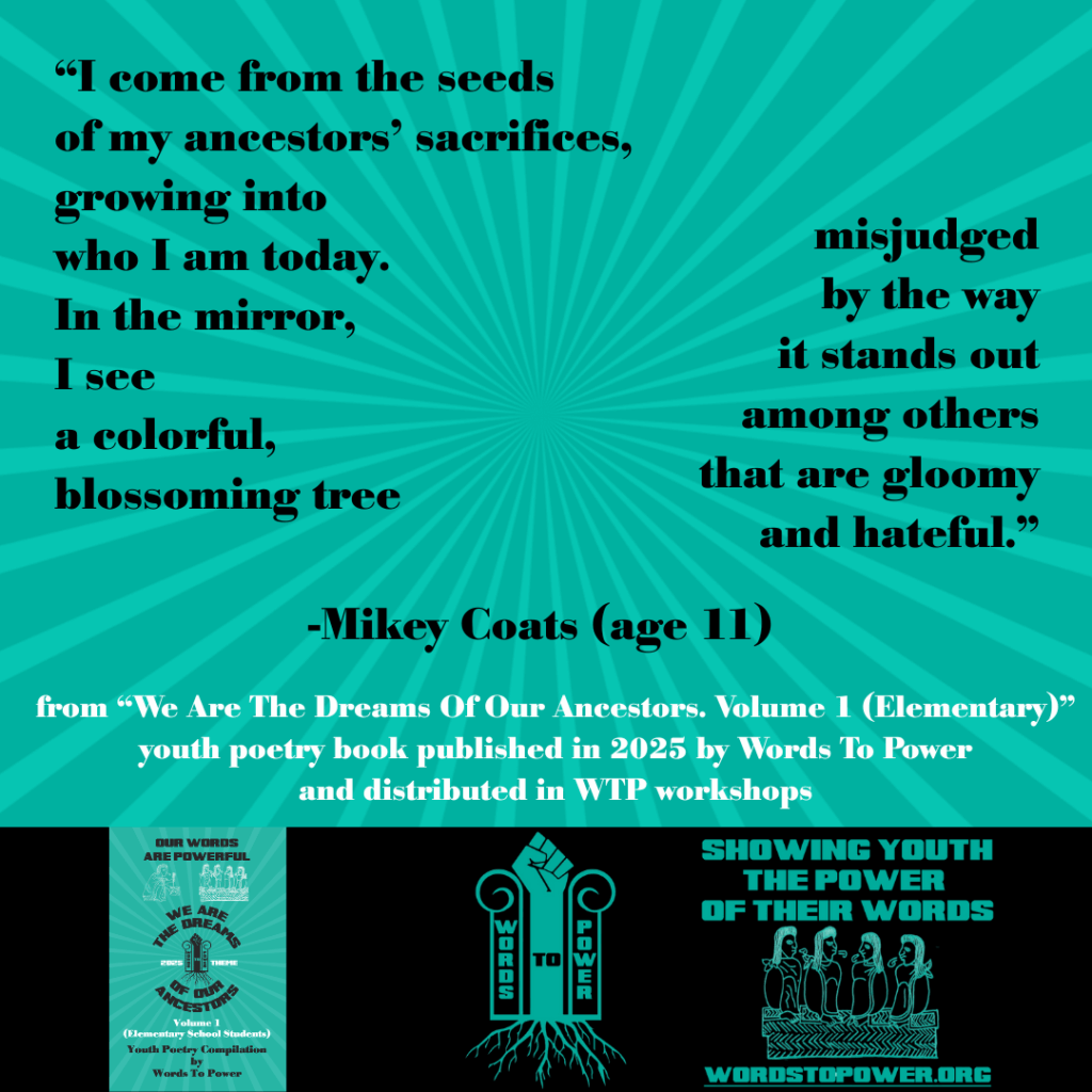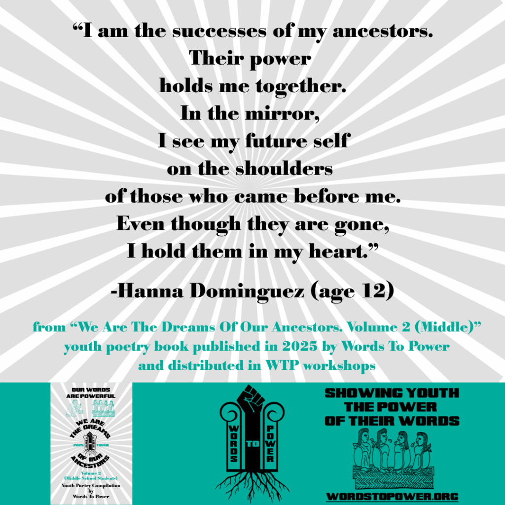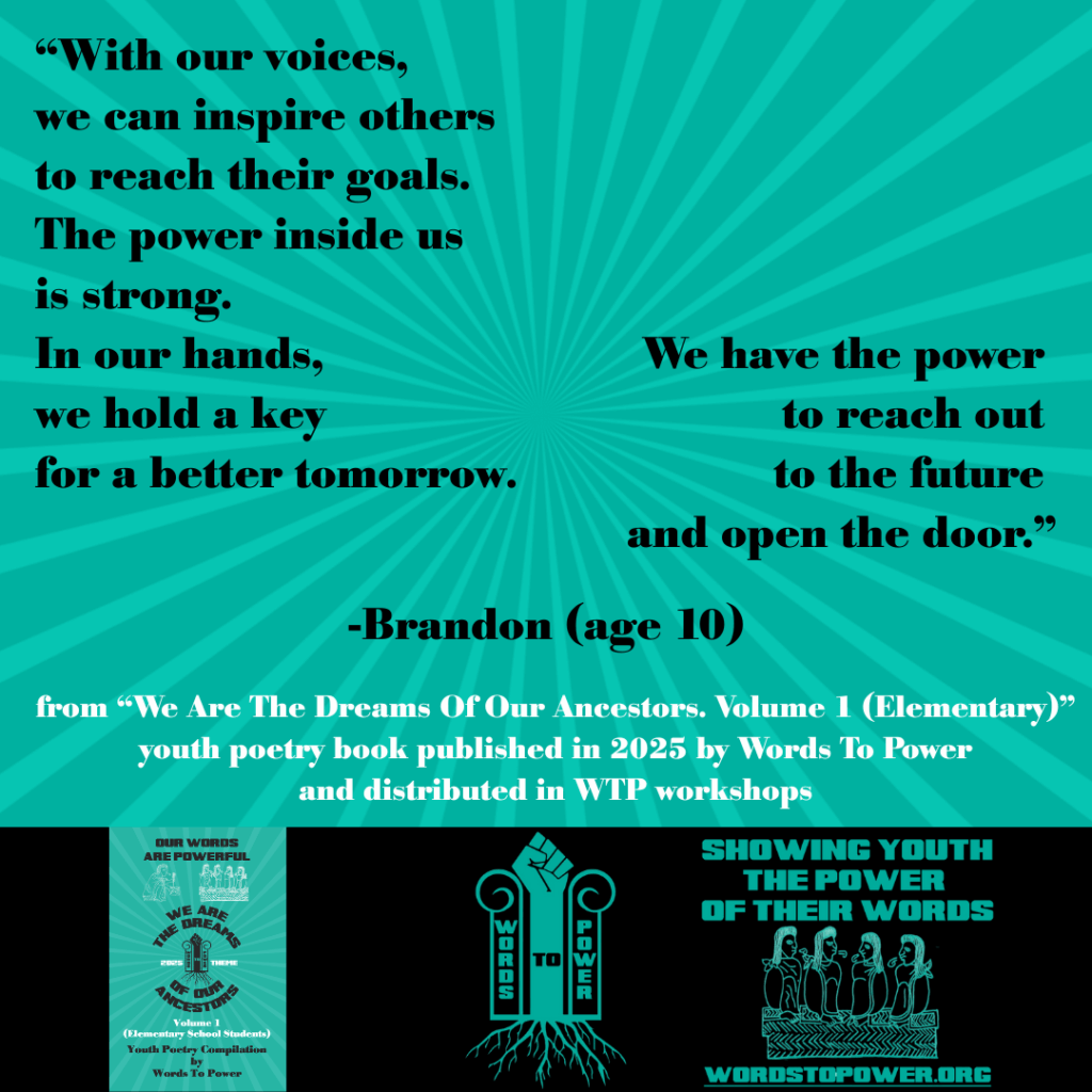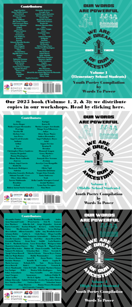 Words To Power’s 2026 youth poetry publication theme on the designs we will use for the 3 book covers (elementary, middle, HS). We are scheduling school partnerships (poetry workshop series and student presentation)… so connect with us to bring us to your school.